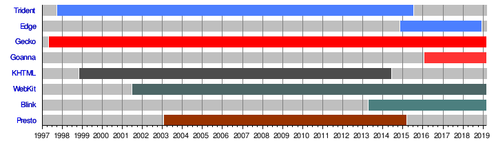 | 트라이던트(Trident) | 마이크로소프트의 레이아웃 엔진으로 인터넷 익스플로러, 아웃룩 익스프레스, 마이크로소프트 아웃룩, 그리고 윈앰프, 리얼플레이어의 미니 브라우저 등이 이를 탑재하고 있다. |